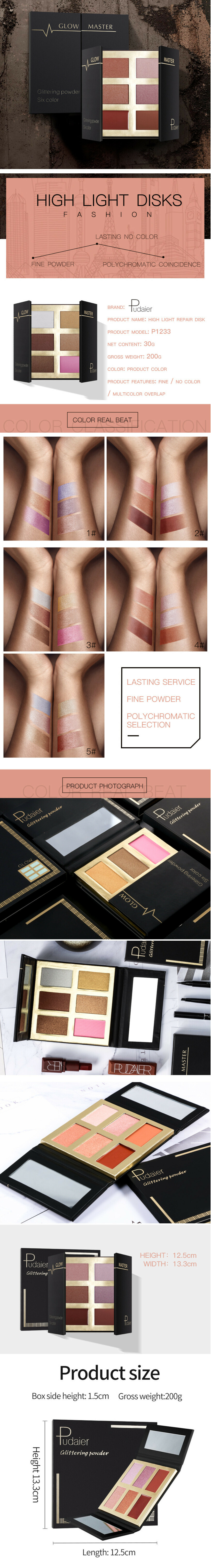 新款Pudaier6色啞光煙熏妝眼影盤(05#)