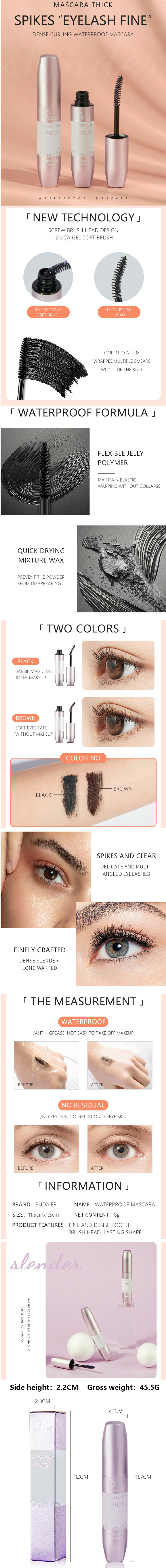 新款Pudaier濃密捲翹防水睫毛液(咖啡色8g)