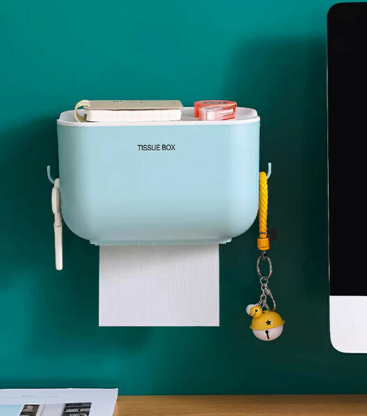 新款免打孔壁掛式紙巾盒(升級淺藍色小號)