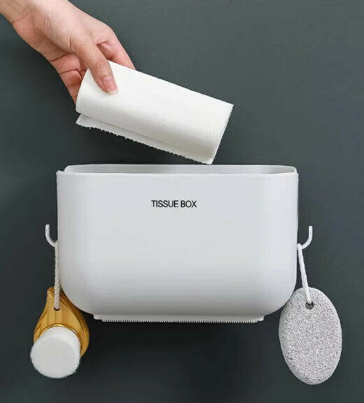 新款免打孔壁掛式紙巾盒(升級米白色大號)