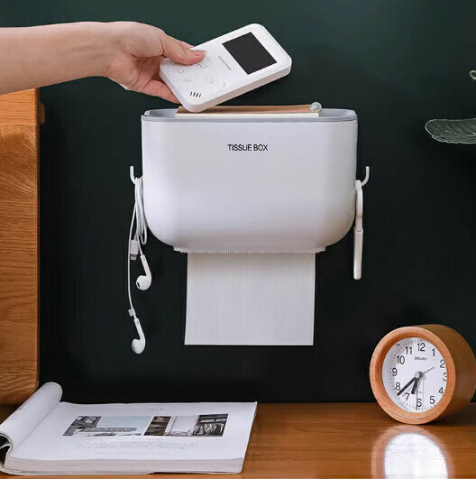 新款免打孔壁掛式紙巾盒(升級米白色小號)