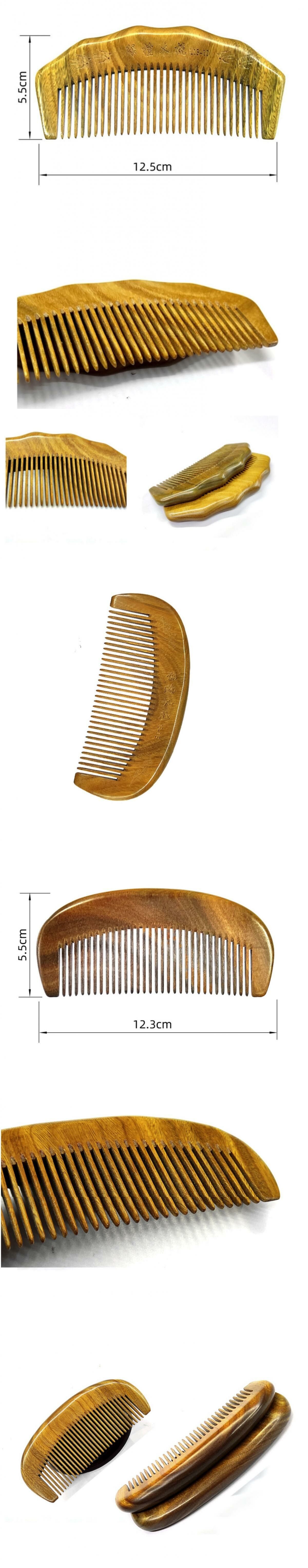 新款純天然便攜綠檀木梳(桔色 金花圖案)