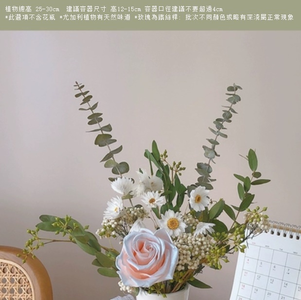 新款真花插花擺件(不含花瓶 泰迪葵小葉)