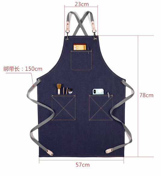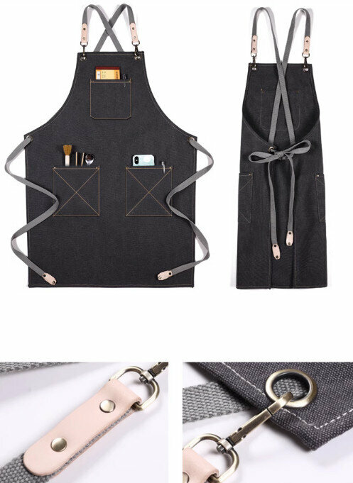 新款餐廳酒吧工作圍裙(織帶厚帆布E款-黑色)