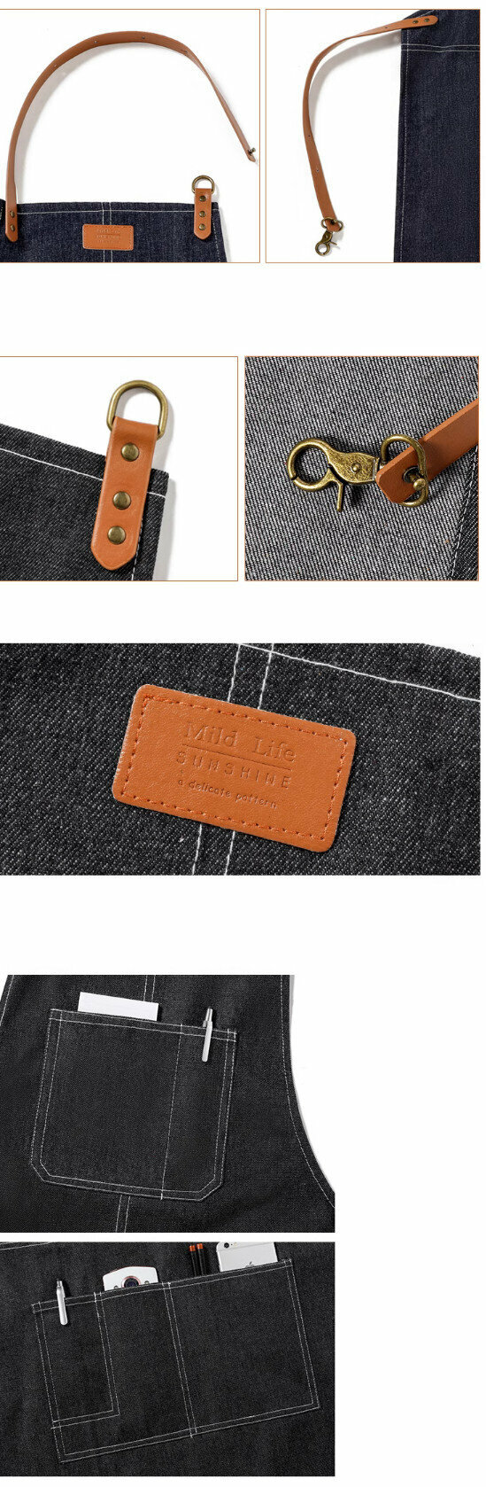 新款餐廳奶茶店咖啡師圍裙(掛脖鑰匙扣黑灰厚帆布)