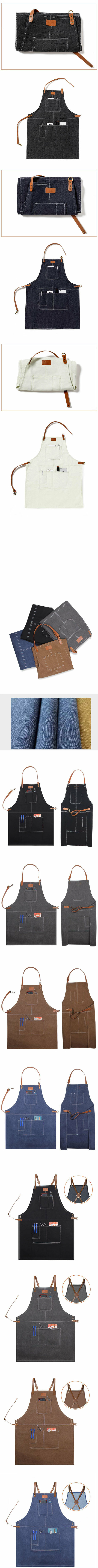 新款餐廳奶茶店咖啡師圍裙(掛脖鑰匙扣藍色厚帆布)