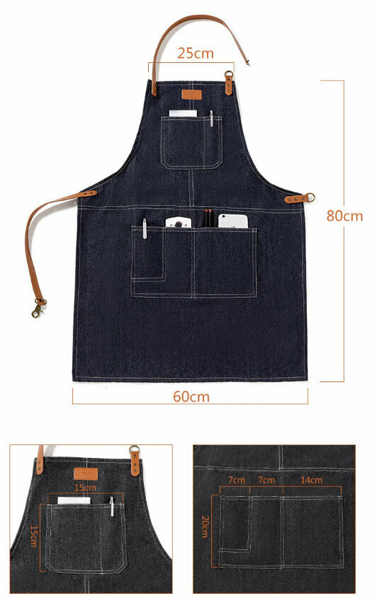 新款餐廳奶茶店咖啡師圍裙(鑰匙扣駝色厚帆布交叉可調節)