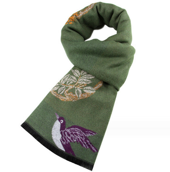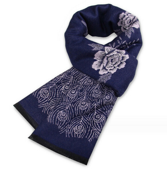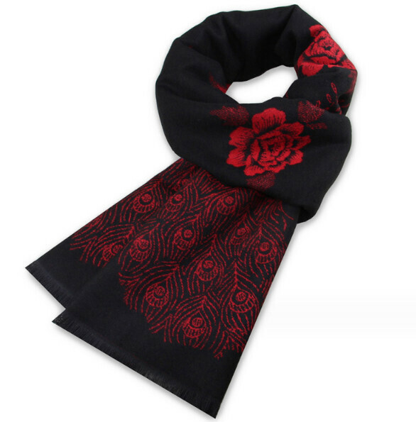 新款復古名族風保暖圍巾(貴黃孔雀牡丹圖)(尺寸:長180*寬30cm)
