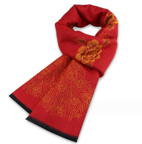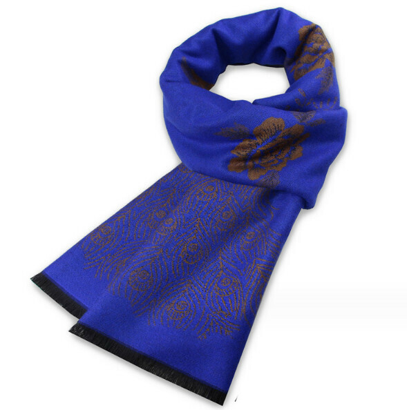 新款復古名族風保暖圍巾(寶藍孔雀牡丹圖)(尺寸:長180*寬30cm)