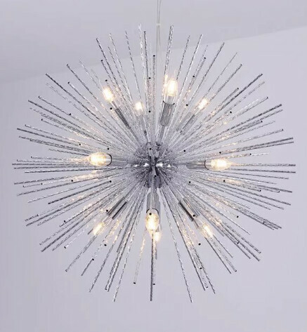 新款復古鐵藝蒲公英LED吊燈(鉻色8頭直徑55cm-暖光)