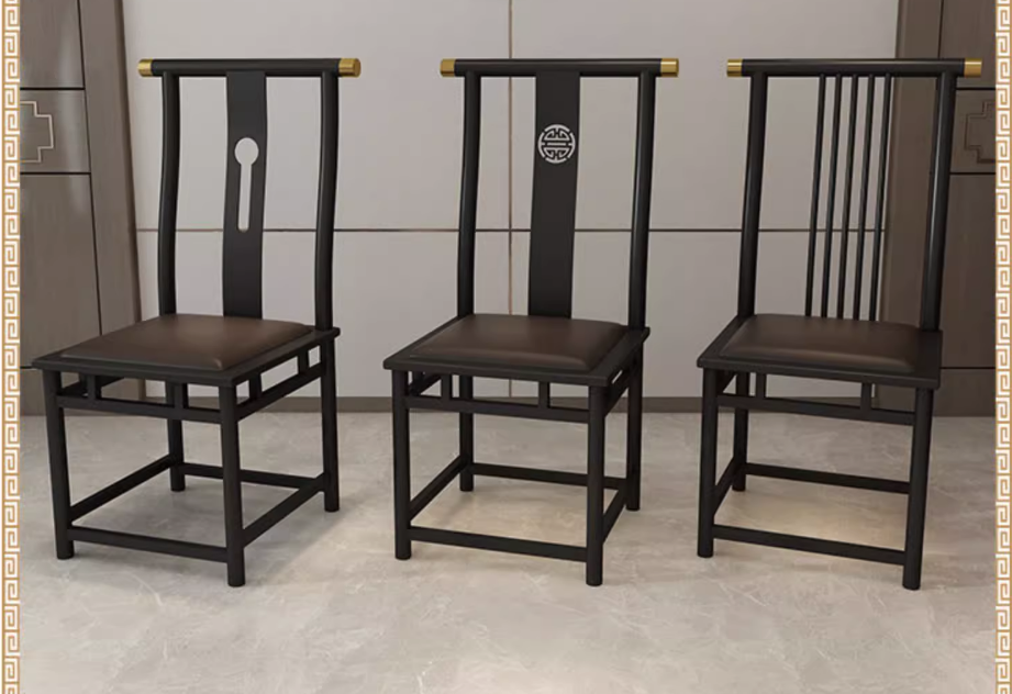 新款復古風鐵藝靠背餐椅(E款*黑架*藍色坐墊)(尺寸:45*45*105CM)