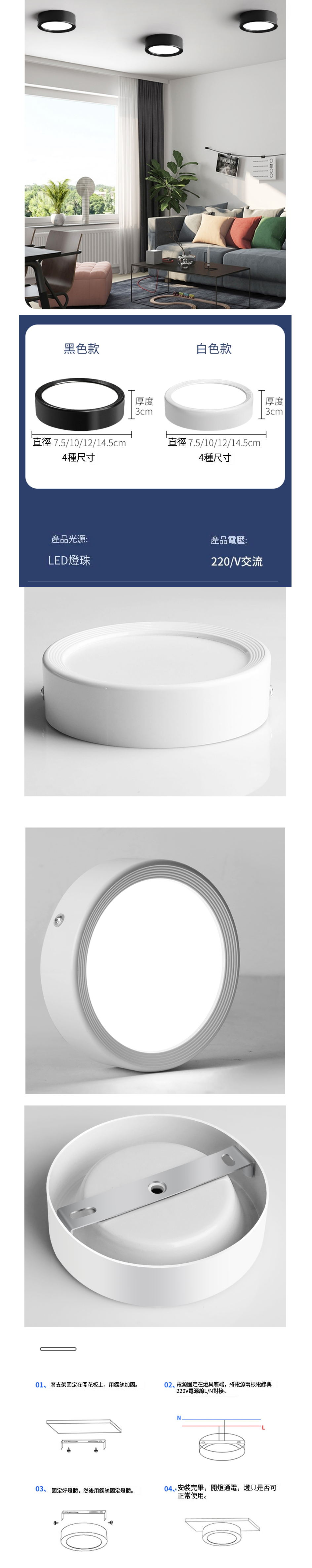 新款圓形吸頂射燈(升級鋁材-15W白光【白殼】直徑12cm高3cm)