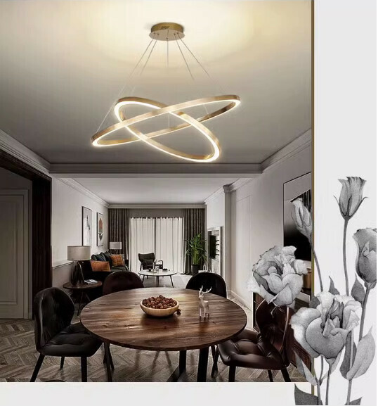 新款圓形圈圈吊燈(拉絲金單式四層100+80+60+40/無極調光)