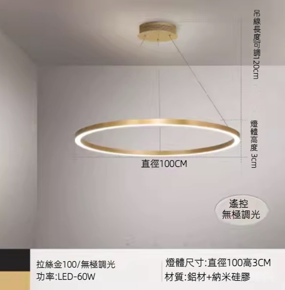 新款圓形圈圈吊燈(拉絲金單式單層100/無極調光)