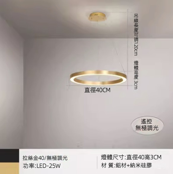 新款圓形圈圈吊燈(拉絲金單式單層40/無極 )