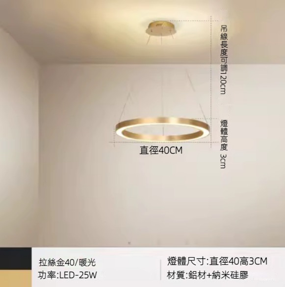 新款圓形圈圈吊燈(拉絲金單式單層40/暖光)
