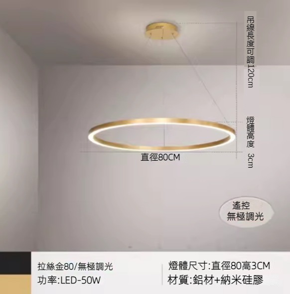 新款圓形圈圈吊燈(拉絲金單式單層80/無極調光)