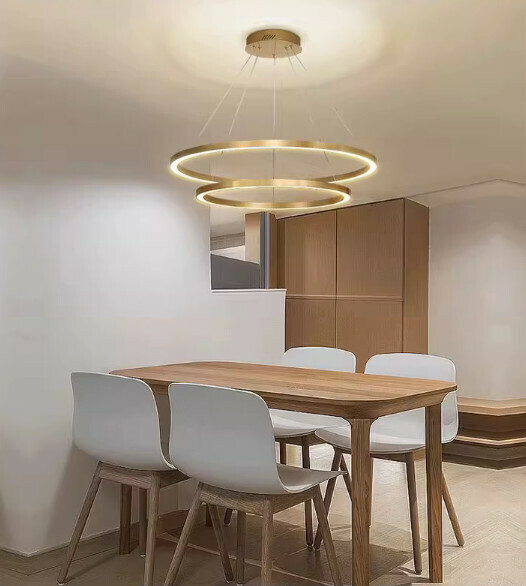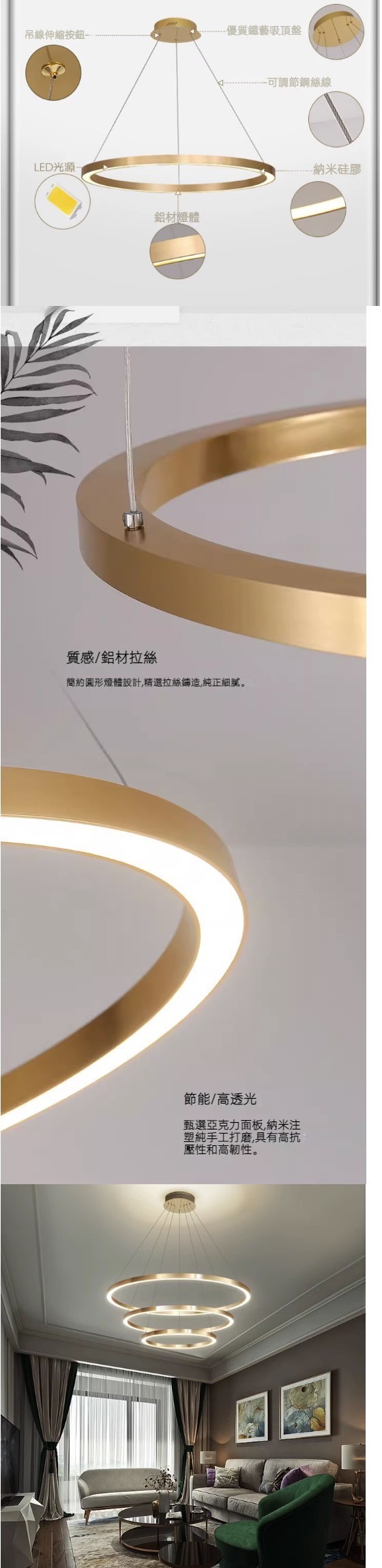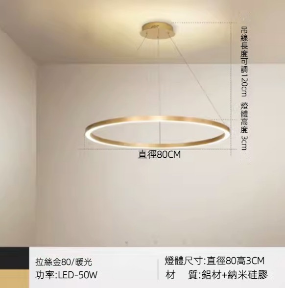 新款圓形圈圈吊燈(拉絲金單式單層80/暖光)