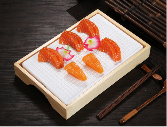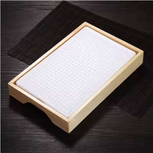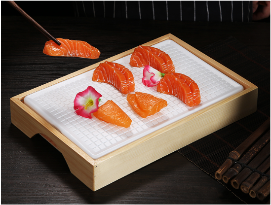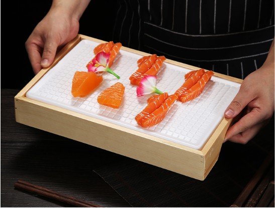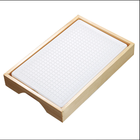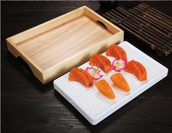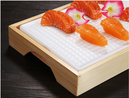 新款刺身冰盤(大號長方形冰盤+木托)(規格:30*19*3CM)