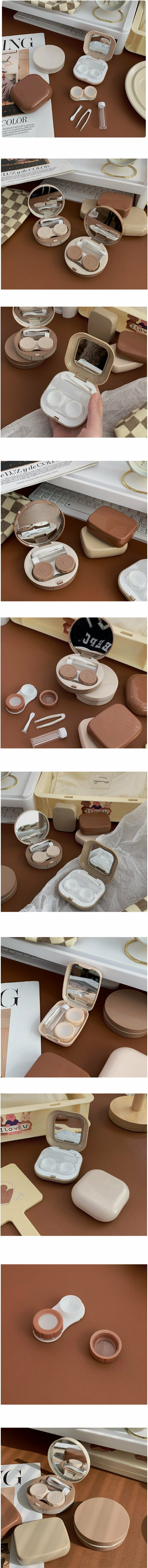 新款簡約便攜隱形眼鏡收納盒(圓形-卡其)