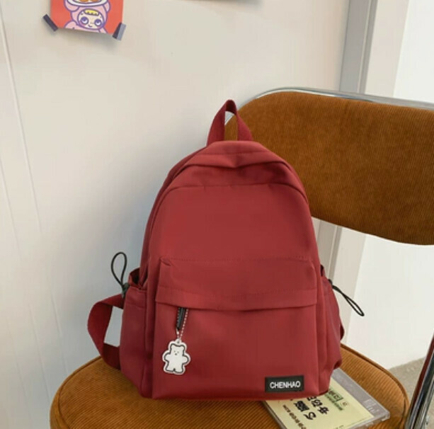 新款簡約百搭小雙肩包女(黑色 帶1個徽章)