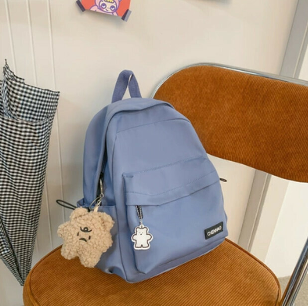 新款簡約百搭小雙肩包女(粉色 帶棕色胖星星挂件+1個徽章)