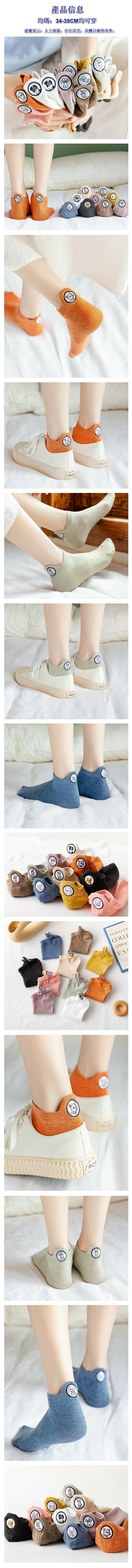 新款簡約卡通刺繡淺口船襪 女士棉襪【橘色】【均碼】