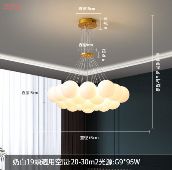 新款簡約忌廉風吊燈【B款13頭滿天星吊燈】