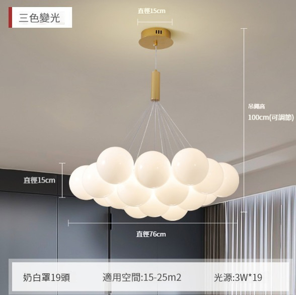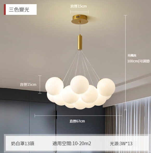 新款簡約忌廉風吊燈【A款7頭金奶白罩】