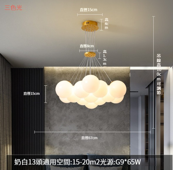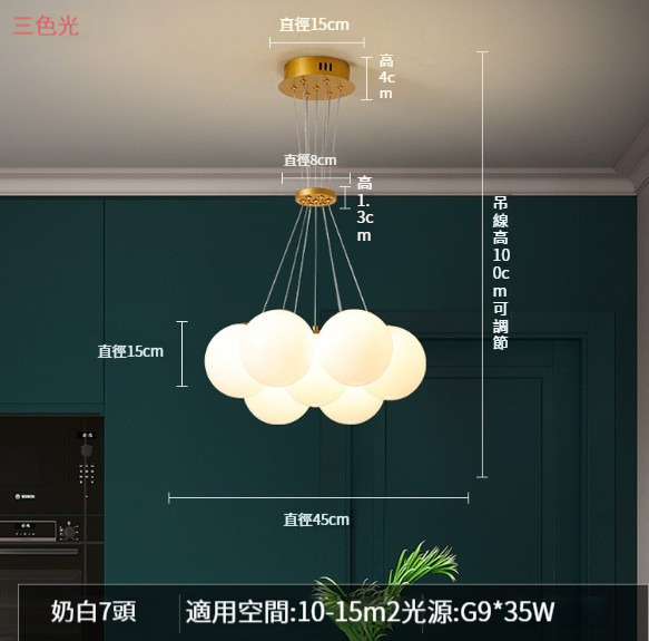 新款簡約忌廉風吊燈【B款3頭金3D罩】