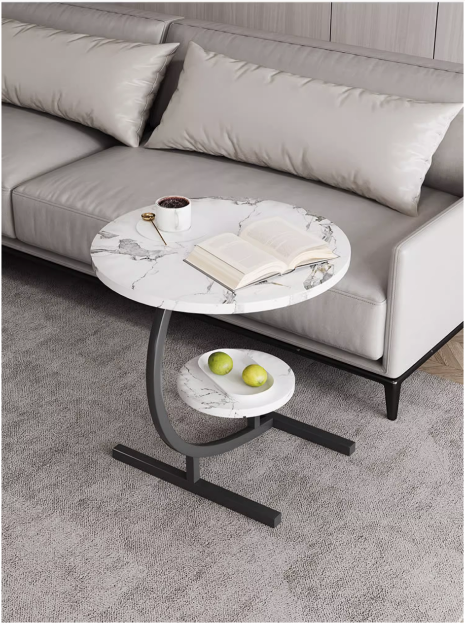新款簡約雙層迷你小圓桌(黑架+黃石紋)(尺寸:60*45*30*32CM)