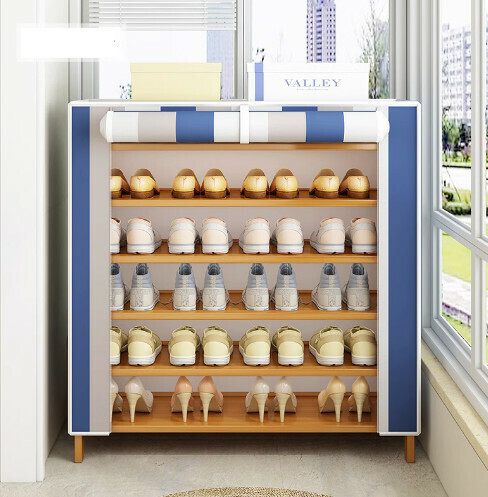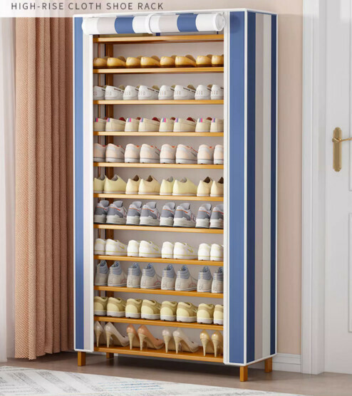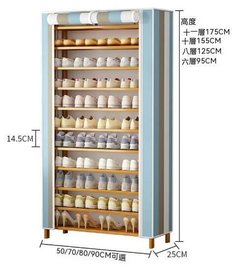 新款簡易防塵鞋架(藏青條紋)(11層-長90cm)