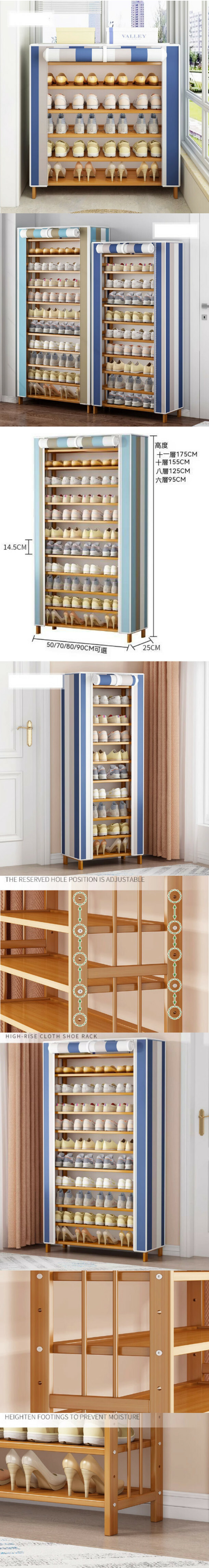 新款簡易防塵鞋架(藏青條紋)(6層-長90cm)