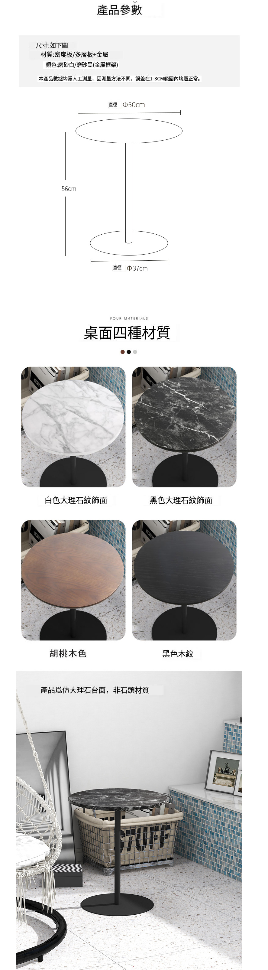 新款簡約仿木紋小圓桌(胡桃木黑腳)(尺寸:直徑50CM,高56CM)