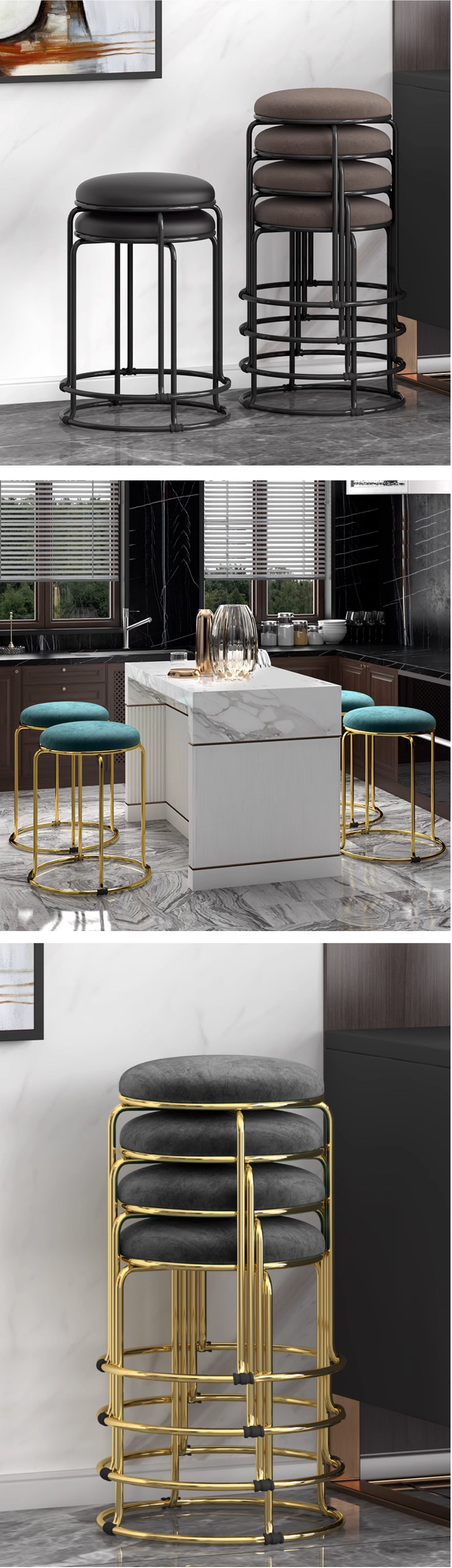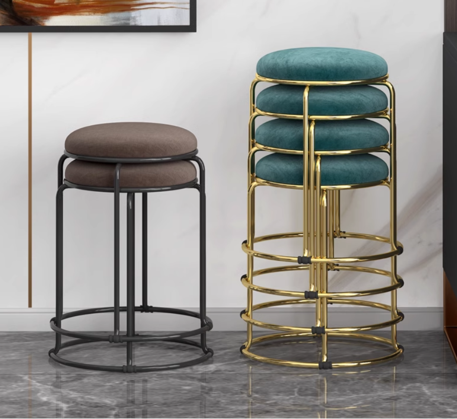 新款簡約輕奢可摞疊小圓凳(鍍金/深灰PU)(尺寸:46*29CM)