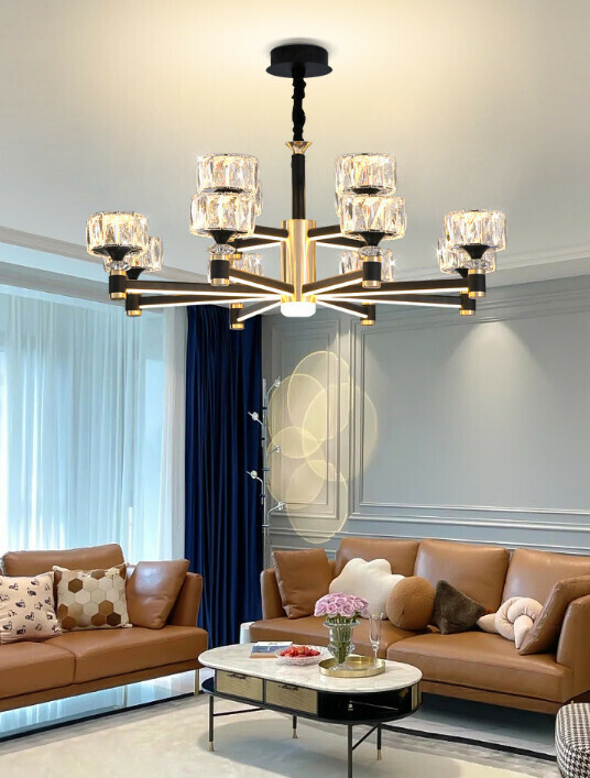 新款簡約現代吊燈(6頭吊燈-水晶燈罩)【LED三色變光】