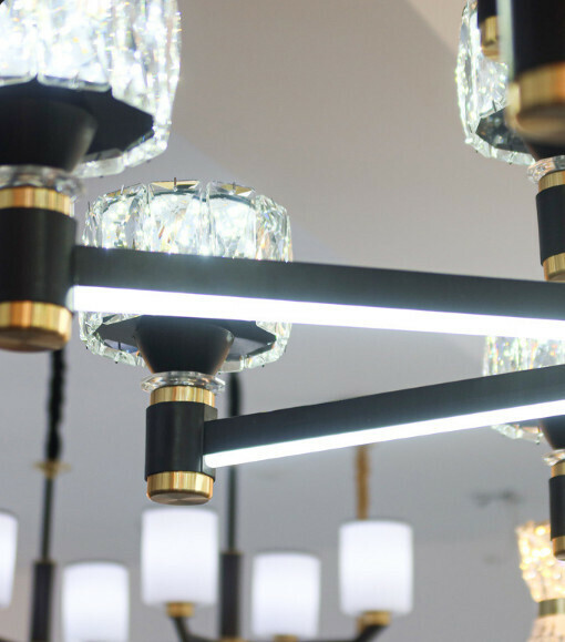 新款簡約現代吊燈(8頭吊燈-水晶燈罩)【LED三色變光】