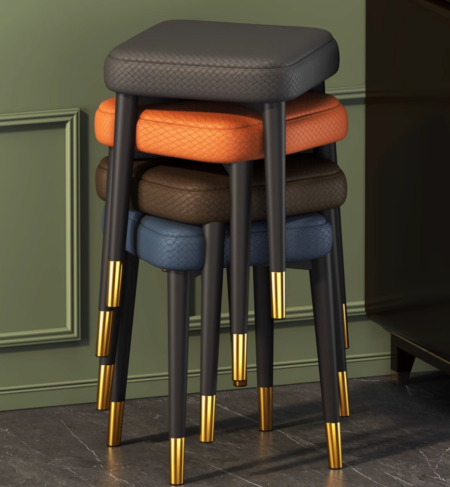 新款簡約現代輕奢舒適小方凳(納帕皮米白色/鍍金腳/乳膠墊)(尺寸:30*30*45CM)