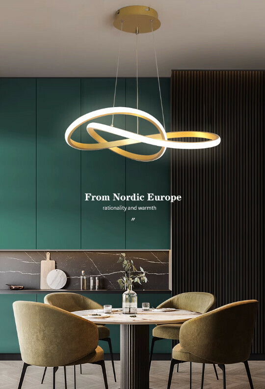 新款簡約現代餐廳吊燈(金色款-直徑50CM)【三色變光-98瓦】