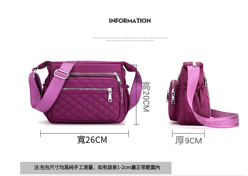 新款簡約牛津布包 斜挎女包 輕便防水尼龍布包 單肩包【黑色】