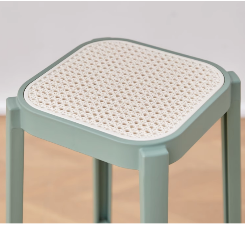 新款簡約塑料仿籐編高腳凳(黑+白芯)(尺寸:坐寬30CM,坐高65CM)