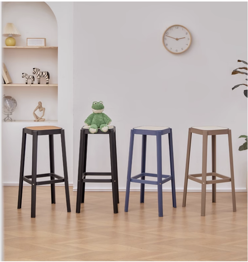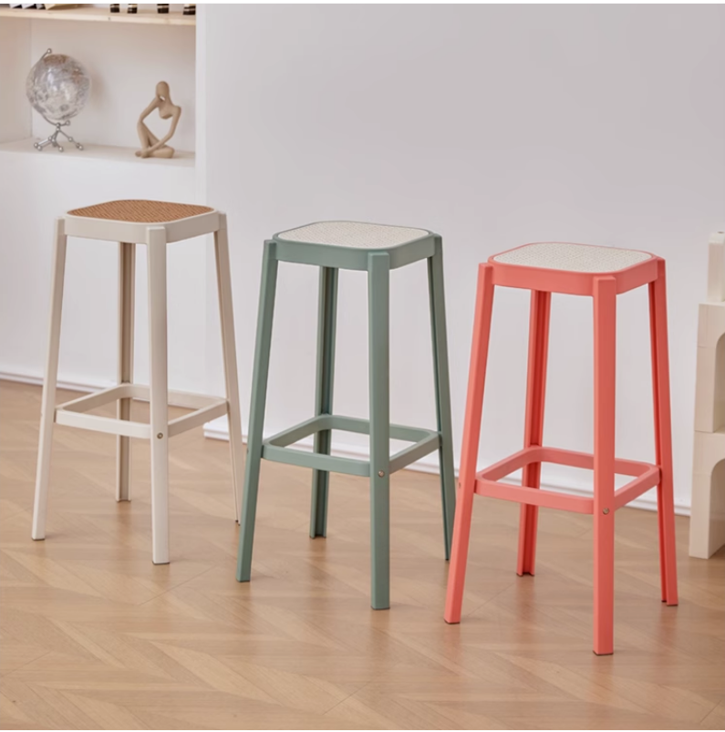 新款簡約塑料仿籐編高腳凳(綠+白芯)(尺寸:坐寬30CM,坐高65CM)