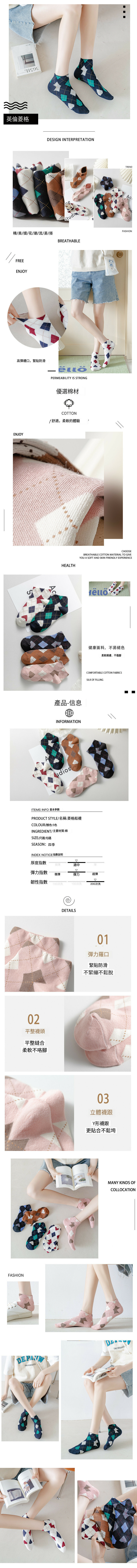 新款簡約復古格子淺口船襪 女士短筒棉襪【藏青】【均碼】