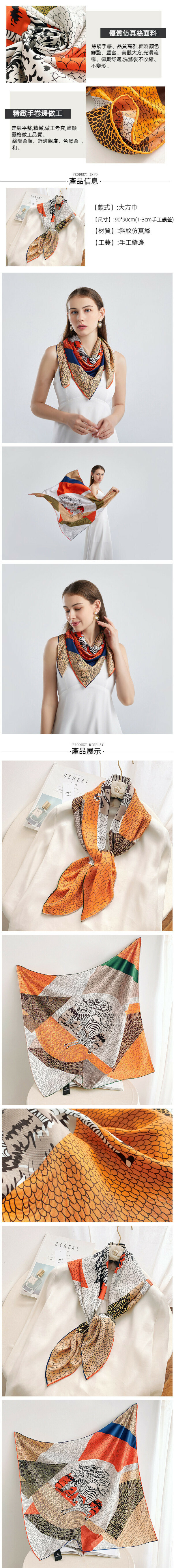 新款仿真絲90方巾絲巾(斑馬印象-橙藍)(尺寸:90*90cm)