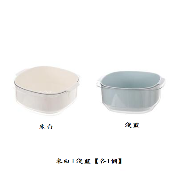 新款洗菜盆雙層瀝水籃(米白+淺藍【各1個】)