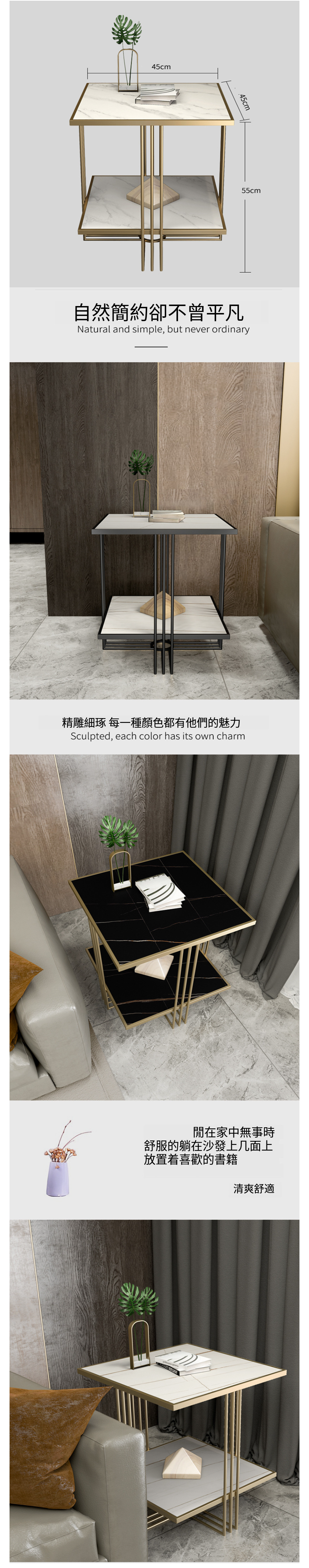 新款岩板茶几雙層方桌(金架+雪山白岩板,50*50*60cm)