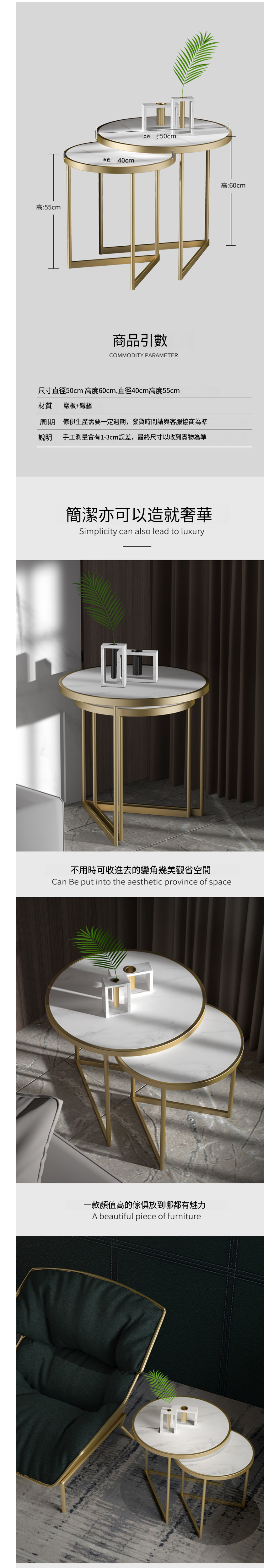 新款岩板茶几小圓桌組合(金架+雪山白岩板,50+40*55cm)