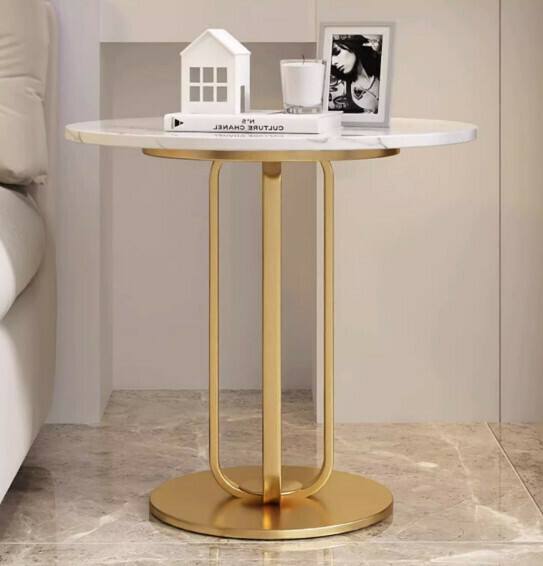 新款岩板意式茶几【雪山石(亮面)+金架】【尺寸:50*50*54.3cm】