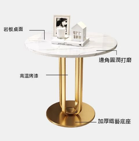 新款岩板意式茶几【雪山石(啞光)+黑架】【尺寸:60*60*54.3cm】