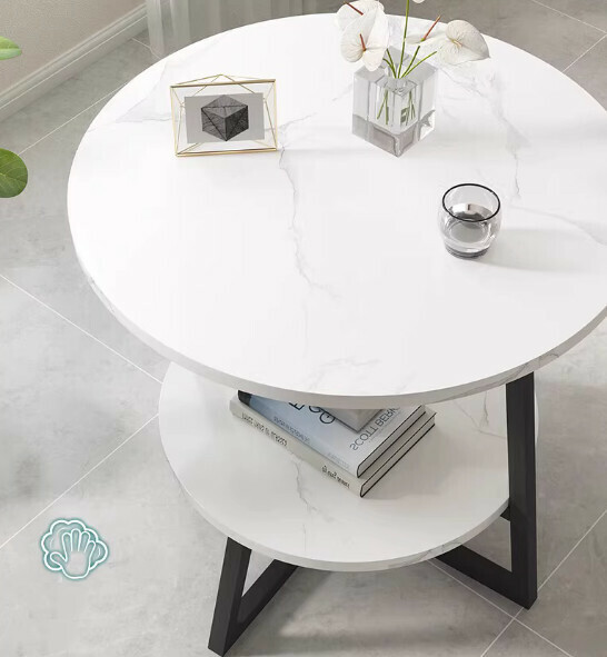 新款岩板簡約現代客廳茶几(雪白岩板+金架)【尺寸:40*40*55cm】